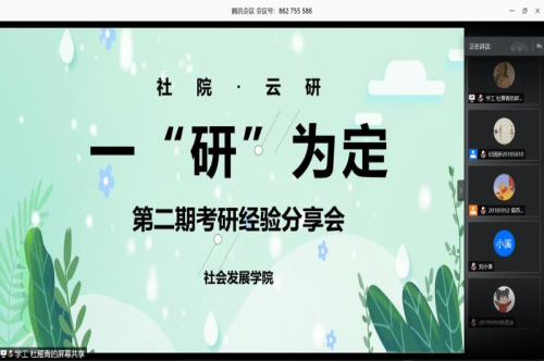 为加强学风建设,助力在校生考研复习,做好毕业生感恩教育工作,5月30日至6月1日,社会发展学院以线上线下结合的方式举办“一‘研’为定”考研经验系列分享会,邀请2020年考研成功的应届毕业生为参会同学答疑解惑、分享经验。分享会目前已成功举办3期。