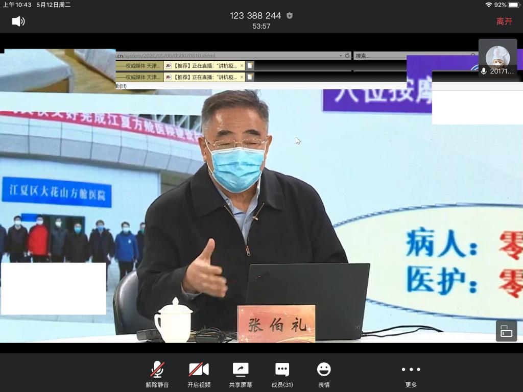 中国工程院院士、天津中医药大学校长张伯礼教授以“众志成城、科学防治,在抗疫斗争中彰显民族自信心”为主题为广大师生生动讲述了一线医护人员临危不惧、最美逆行的感人故事,引起广大师生的强烈共鸣。