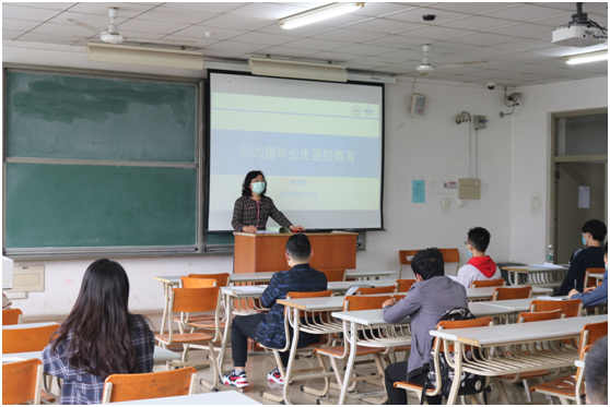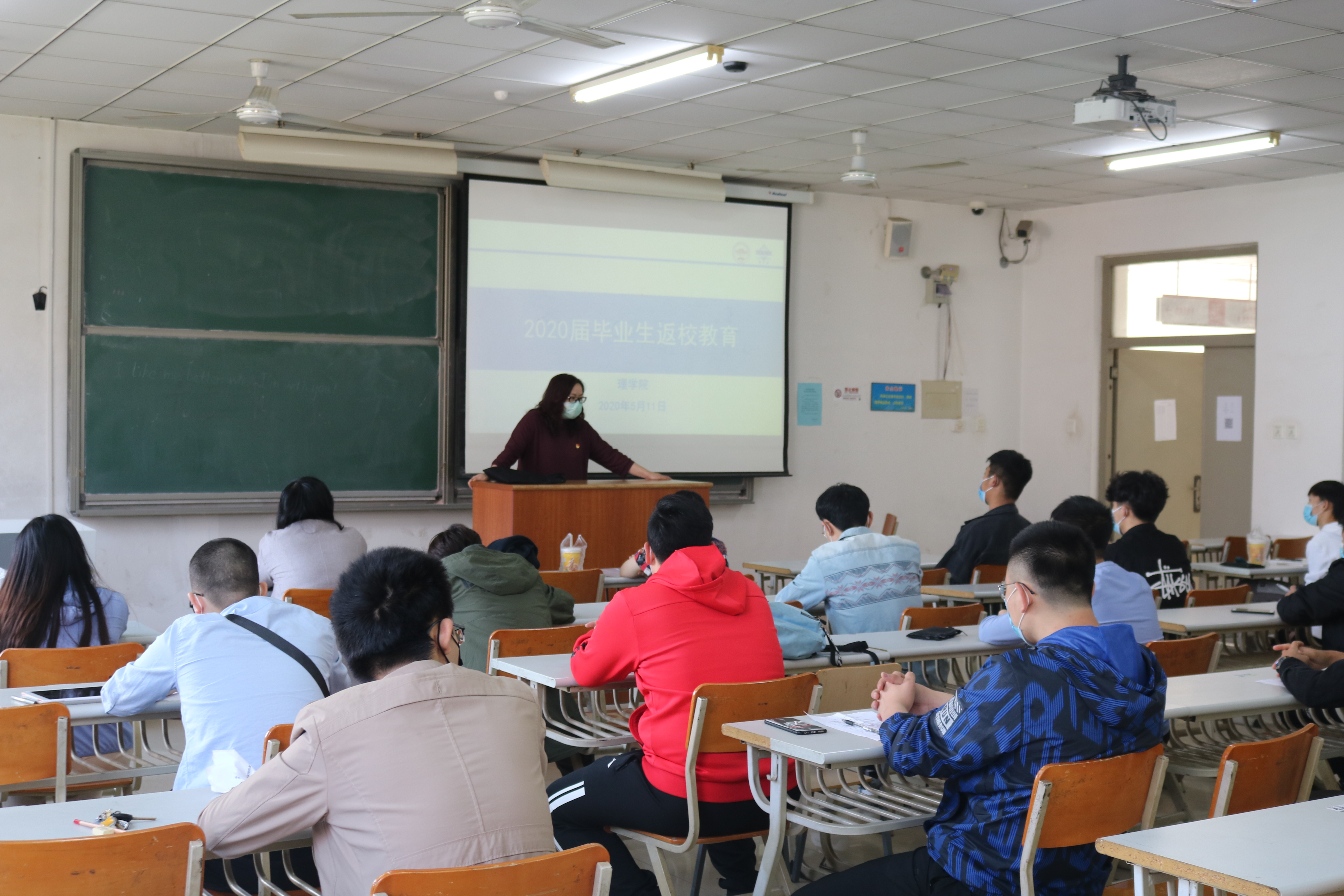 根据学校做好学生返校复课工作的有关要求,为进一步做好学院疫情防控工作,提升学生疫情防控意识、普及防疫知识和安全常识,督促学生顺利完成学业, 5月11日,理学院在6号楼301-304教室开展了2020届毕业生返校教育。理学院党政领导和全体返校毕业生参加了此次教育活动。