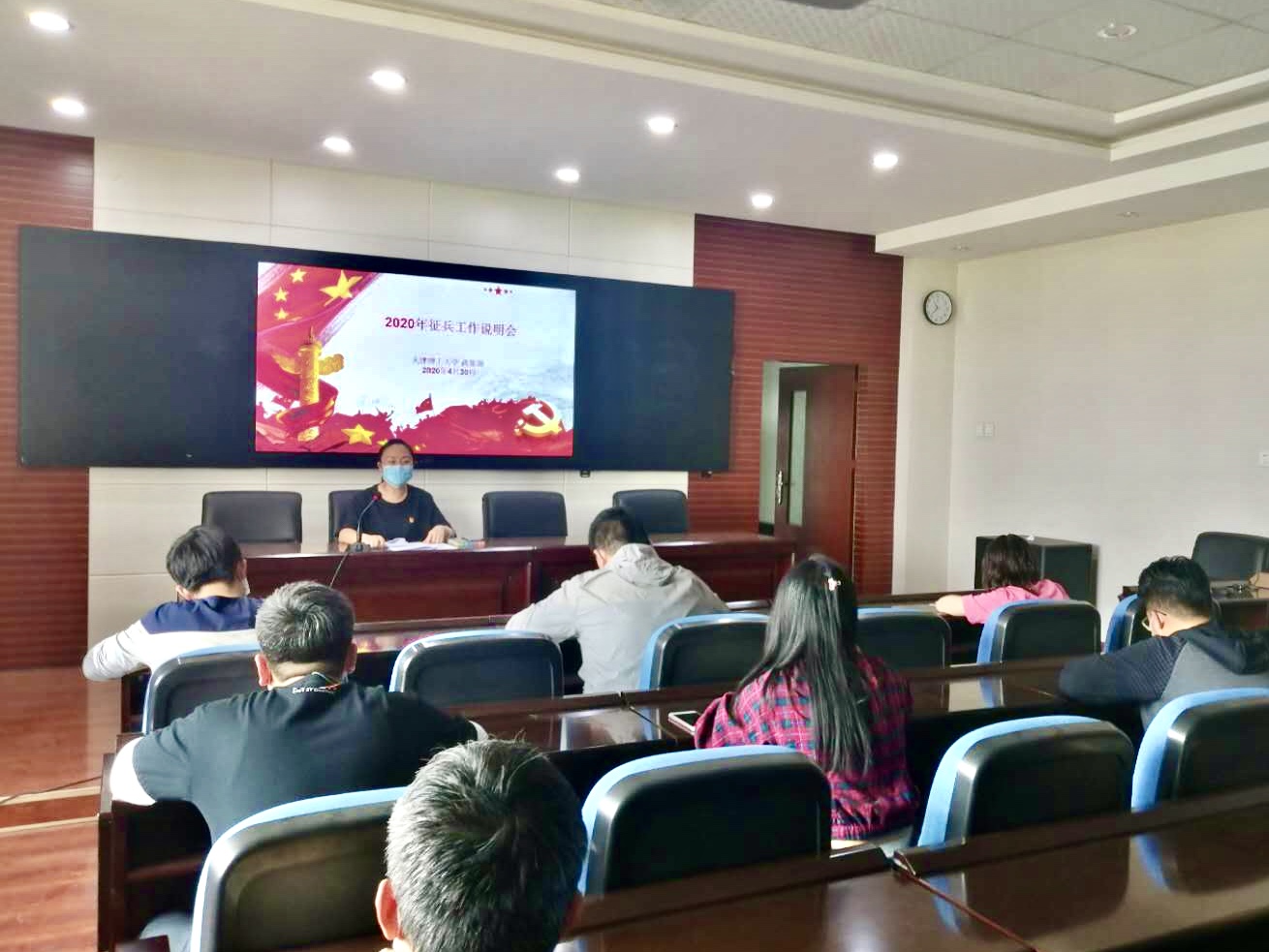以新时代强军目标为指引,根据本市征兵工作会议精神和教育两委具体任务要求,为确保在防疫形势下征兵工作有序推进,进一步做好我校征兵宣传发动工作,4月30日下午,学校在11号楼会议室设立主会场,召开年度征兵工作说明会,会议由校人民武装部相关工作负责同志召集,来自我校16个征兵联络点的工作人员参会,南开区人民武装部征兵宣传员出席线上会议。