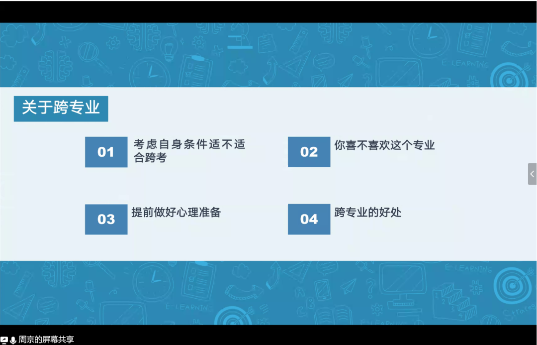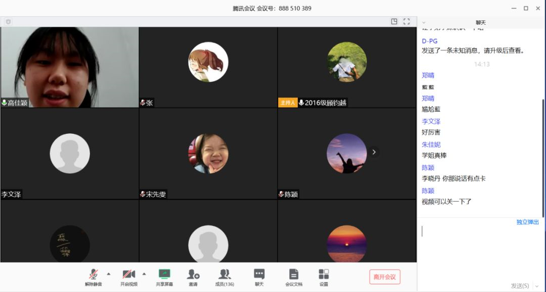 为帮助同学们明确考研目标,提高考研热情,了解更多考研信息,掌握相关考研技巧,近日,理学院通过腾讯会议举办了本专业、跨专业考研经验交流会。交流会邀请了顺利考取研究生的2013级、2014级、2015级毕业生以及2016级初试成绩较好的同学与学弟学妹们进行线上分享。辅导员老师、2017级准备参加考研的学生以及2018、2019级部分学生参加活动。
