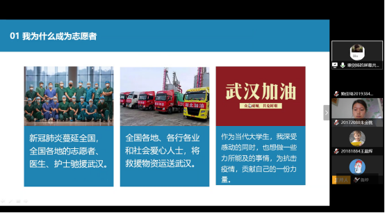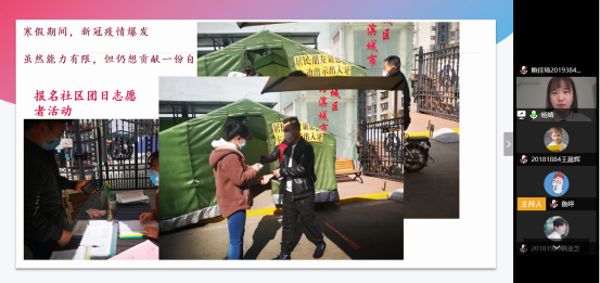 评选过程中,参评选手们的正义、勇敢、奉献精神深深打动每一个人。我们同时了解到,在这个不平凡的假期,许多参评选手都作为社区志愿者参与到新冠肺炎疫情防控工作中,他们用自己的实际行动来弘扬着随着时代进步而不断发展的、与时俱进的雷锋精神。评选最后,辅导员回冰然老师说道:雷锋精神是中华民族传统美德的一种积淀,在参评选手身上,我们真正感受到了“隔离病毒,不隔离爱”,也看到了当代大学生的爱心、作为与责任感。