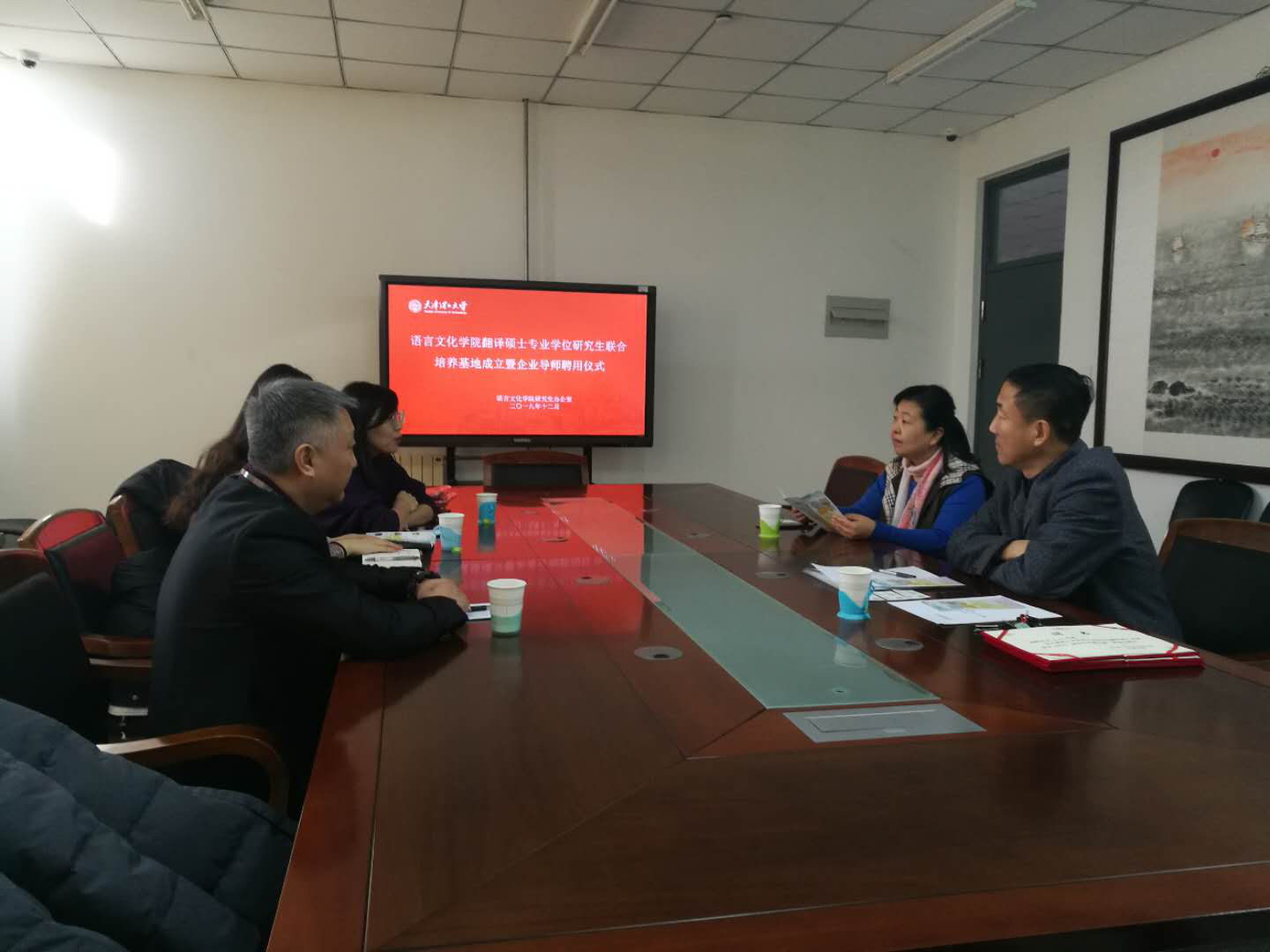 12月19日,语言文化学院与北京思必锐翻译有限责任公司、天津华译语联科技股份有限公司和天津乐译通翻译服务有限公司翻译硕士联合培养签约仪式在学院小会议室举行。学院有关负责人、北京思必锐等三家企业负责人及相关工作人员参加。