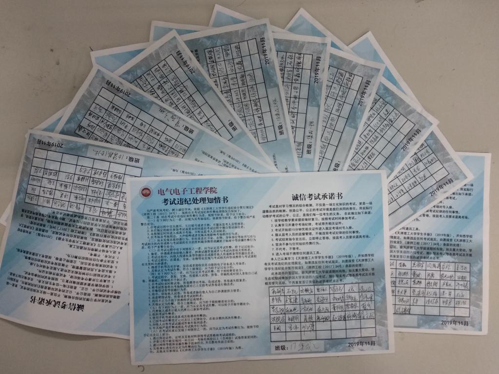 围绕学校统一工作部署,我学院从基础工作抓起,规范学生考勤管理,成立风纪委员会,严格班级考勤,每周一报各班级出勤情况,对于出勤情况较差学生进行及时进行教育管理,从源头治理,保证出勤质量。在此基础之上,积极落实诚信教育,在全学院范围内进行诚信考试承诺书的签署,通过线上线下双重宣传,明确违纪后果,筑牢纪律意识,营造诚信氛围。