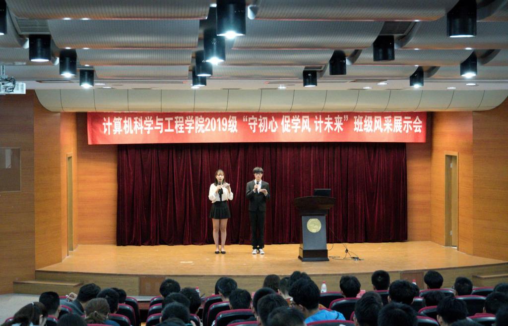 为加强新生班级建设,推动学院学风建设,促进良好班风、学风的形成,11月8日,计算机科学与工程学院在理学院报告厅举办了 “守初心、促学风、计未来”2019级新生班级风采展示会。学院有关负责同志、辅导员及180余名大一新生参加了活动。