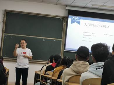 本次讲座中,刘铎老师以自己为例子,给同学们生动形象地讲述如何才能有意义的度过大学生活,进而引出同学们如何正确看待大学生创业等问题。刘铎学长在校期间曾获得全国大学生“挑战杯”创业大赛全国总决赛铜奖、天津市优秀创新创业奖学金、KY.COM“理工英才”优秀毕业生等荣誉。毕业后先后创办摩尔英语、哈维斯特文化咖啡厅等项目,其丰富的创业经历与事迹先后两次被《天津日报》专访报道,并多次受邀到天津广播电视台做创业类节目嘉宾。刘铎学长告诫大家,可怕的不是未来创业道路上布满荆棘,可怕的也不是人生的路上伤痕累累,可怕的是停下了前进脚步,只有在泥泞中挣扎过,在逆境中成长了,才能铸就现在的辉煌。讲座过程中同学们积极与刘铎老师互动交流,提出了自己的想法和疑问,现场其乐融融。