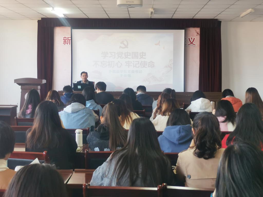 为深入学习贯彻习近平新时代中国特色社会主义思想和党的十九大精神,推进“不忘初心、牢记使命”主题教育落细落实,筑牢党性根基,明确责任担当,10月14日,外国语学院成功举办初级党校开班仪式暨“不忘初心、牢记使命”主题教育专题党课,院党委书记于景明出席开班仪式并为40余名入党积极分子讲授了党课。