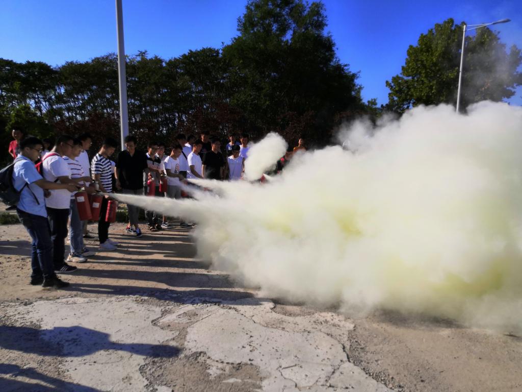 在随后的消防灭火实战演练活动中,同学们学习了灭火器、消防水枪等的使用方法和注意事项,在工作人员的指导下,还进行了实用演练,并就使用过程中容易遇到的问题进行交流。