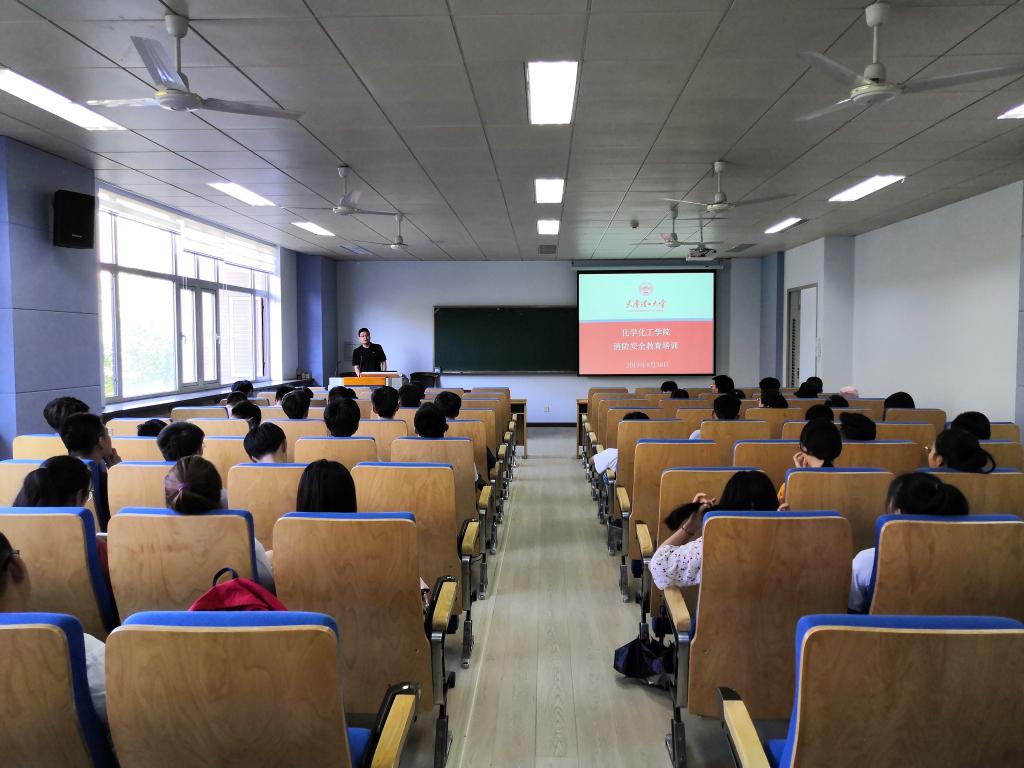 8月30日下午,化学化工学院联合校保卫处在19号教学楼再次举办消防安全知识培训,并开展了消防灭火实战演练活动。化学化工学院2019级研究生新生96人参加了此次活动。