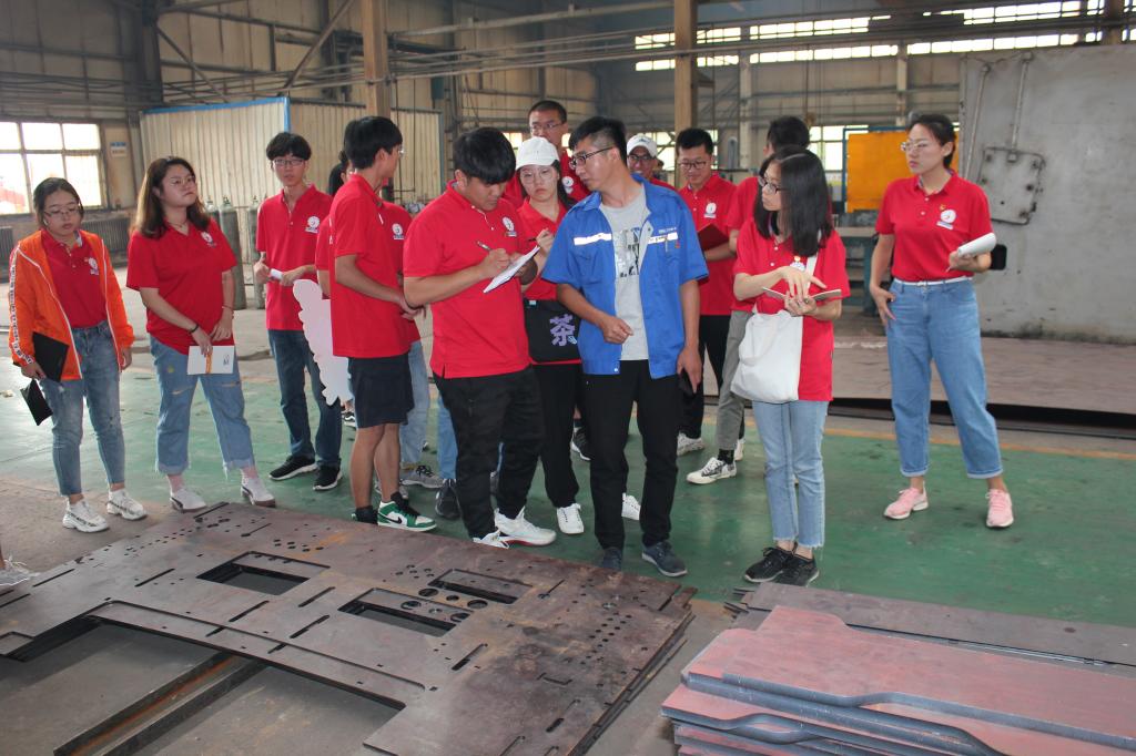 5日上午,实践队赴宣化区春光乡万字会村万丰机械有限公司调查城乡一体化发展创新思路与实践经验。结合实践队成员机械类专业学科特点,开展专业实践与劳动育人实践。万丰集团董事长、万字会村村支书张卫民曾荣获河北省优秀村党组织书记、河北省劳动模范等荣誉称号,与实践队员的座谈中,他详细叙述了带领村民发展集体经济三十年来的曲折历程,寄语在座师生,不忘初心跟党走,坚定信念为民生。下午,师生与建宣路社区开展合作,为社区居民宣讲创建好家风及习近平生态文明思想,向社区儿童宣传垃圾分类的相关知识,并开展了“变废为宝时装秀”等垃圾分类趣味活动,使更多人了解了中华民族的传统美德和可持续发展的知识。