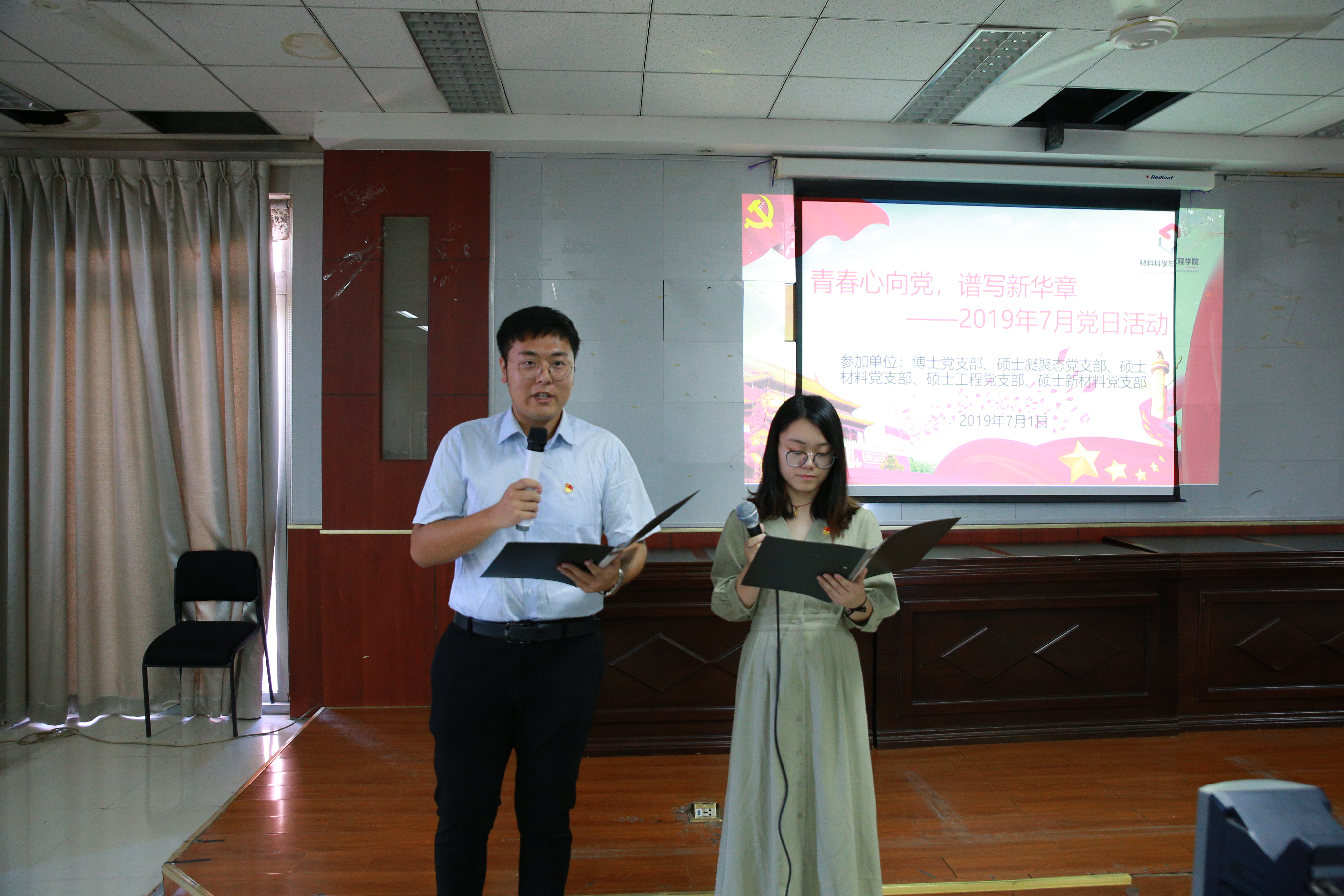 为庆祝中国共产党建党98周年,弘扬爱国主义精神,丰富研究生的文化生活,7月1日,材料科学与工程学院博士研究生党支部与四个硕士研究生党支部联合举办 “青春心向党,谱写新华章”庆七一主题党日活动,用自己最朴实的表达向伟大的党献上诚挚的祝福。学院党政负责同志以及辅导员近100人参加此次活动。