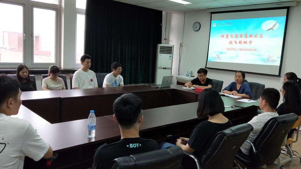 为加强毕业生的思想教育和价值引领,营造文明离校氛围,材料学院于6月19日召开2019届毕业生代表座谈会,学院有关负责同志、辅导员与毕业生代表参加此次座谈会。