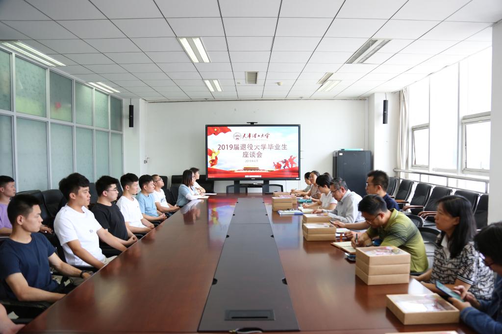 6月13日,学校召开2019届退役大学生座谈会。校党委学工部、武装部、校友办有关负责同志以及相关学院副书记出席,应届毕业生中的退役大学生共18人参加座谈。