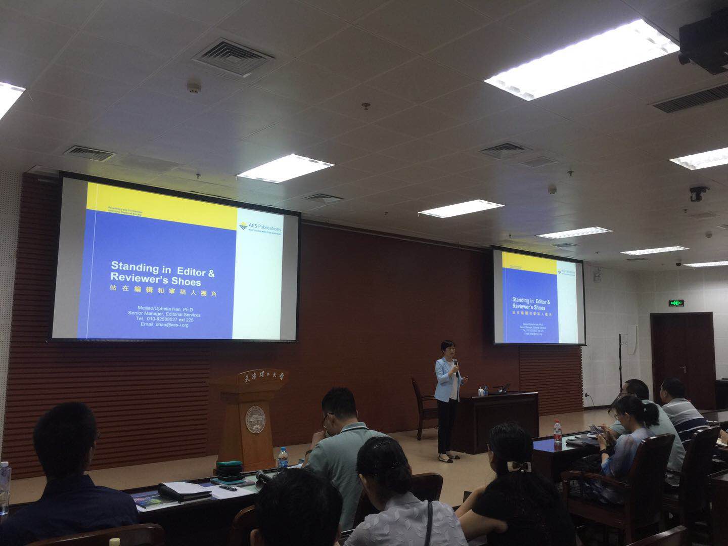 5月30日,美国化学会出版部(ACS Publications)同行评议亚洲区资深运营经理韩美娇博士应邀来我校做关于学术出版写作的报告,报告会在图书馆多功能厅举行。