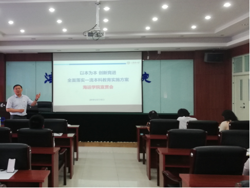 5月15日,海运学院召开全体教师大会。会上,学院主要负责同志赵钢以“以本为本 创新竞进 全面落实一流本科教育实施方案”为主题,传达贯彻学校本科教育工作会议精神。
