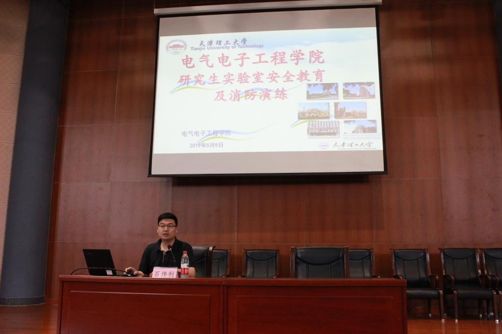 为增强我校研究生实验安全意识,掌握安全知识,提升实验操作技能及意外应急能力,5月9日,校党委安全工作部联合电气电子工程学院共同组织开展研究生实验室安全教育及消防演习活动。电气电子工程学院党委书记王树春、学院辅导员与400余名研究生参加活动,安全工作部石伟利老师担任主讲人。