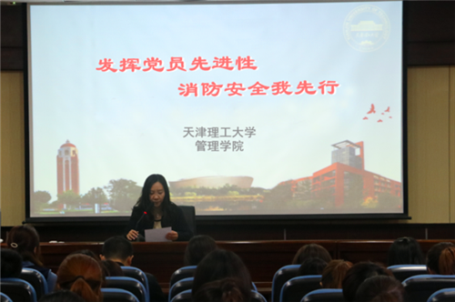 管理学院团委书记李蕊老师从增强党员四个意识的角度出发,向全体党员提出了必须守住安全底线的要求,并结合火灾案例分析,让同学们切身体会到“安全问题无小事”。本科生第一党支部的李志展同学向大家宣读了消防安全倡议书,号召大家提高防火意识,自觉遵守“安全第一,预防为主”的方针,并提出了不在宿舍吸烟、不使用违章电器、不在阳台堆放杂物等具体行为守则。最后,党员同学们集体签署了安全承诺书,表达了自己对于消防安全问题严阵以待的态度,大家纷纷表示要践行党员模范带头作用,主动熄灭身边的消防安全隐患。