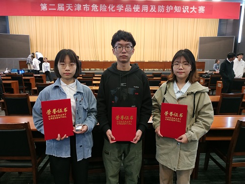 日前,第二届天津市危险化学品使用及防护大赛在天津工业大学落下帷幕,由环境科学与安全工程学院本科生郑凯心、娄荣扬、陈慧玺同学组成的代表队荣获大赛二等奖。